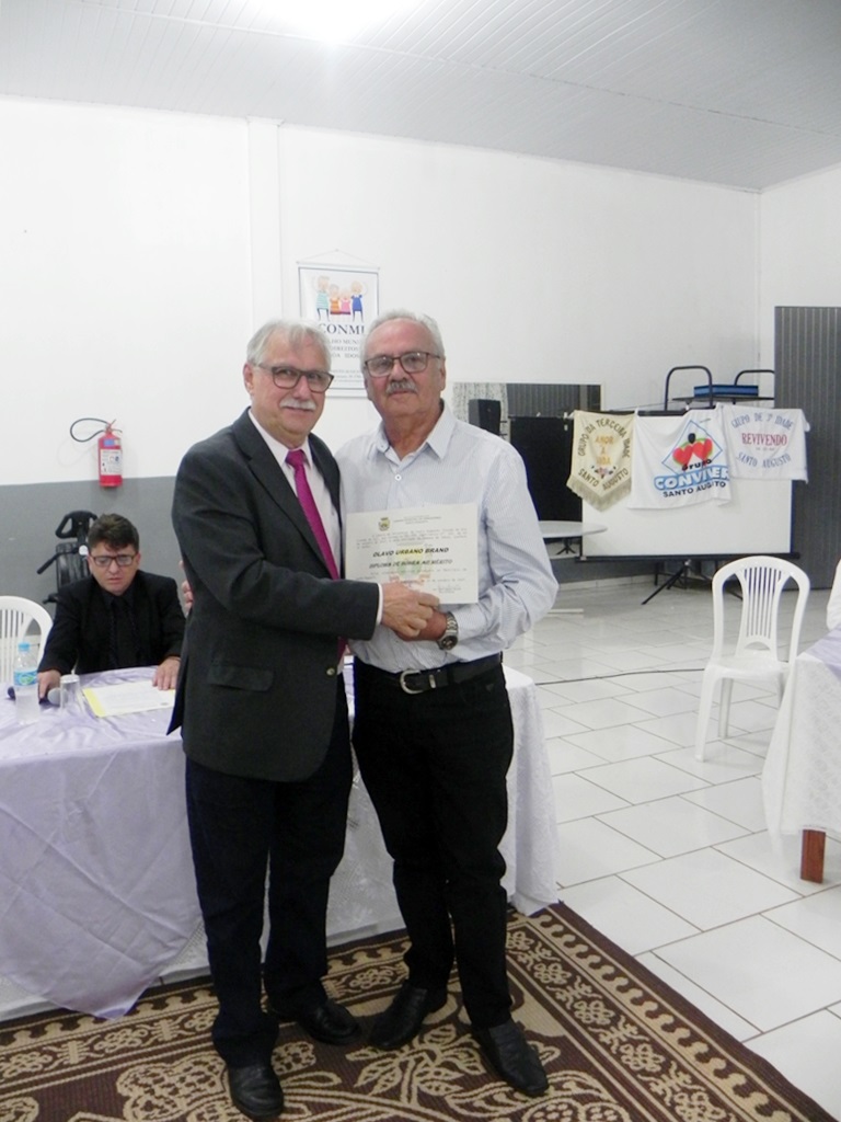 O Excelentíssimo Senhor Prefeito Municipal Naldo Wiegert entregando o certificado ao senhor Olavo Brand